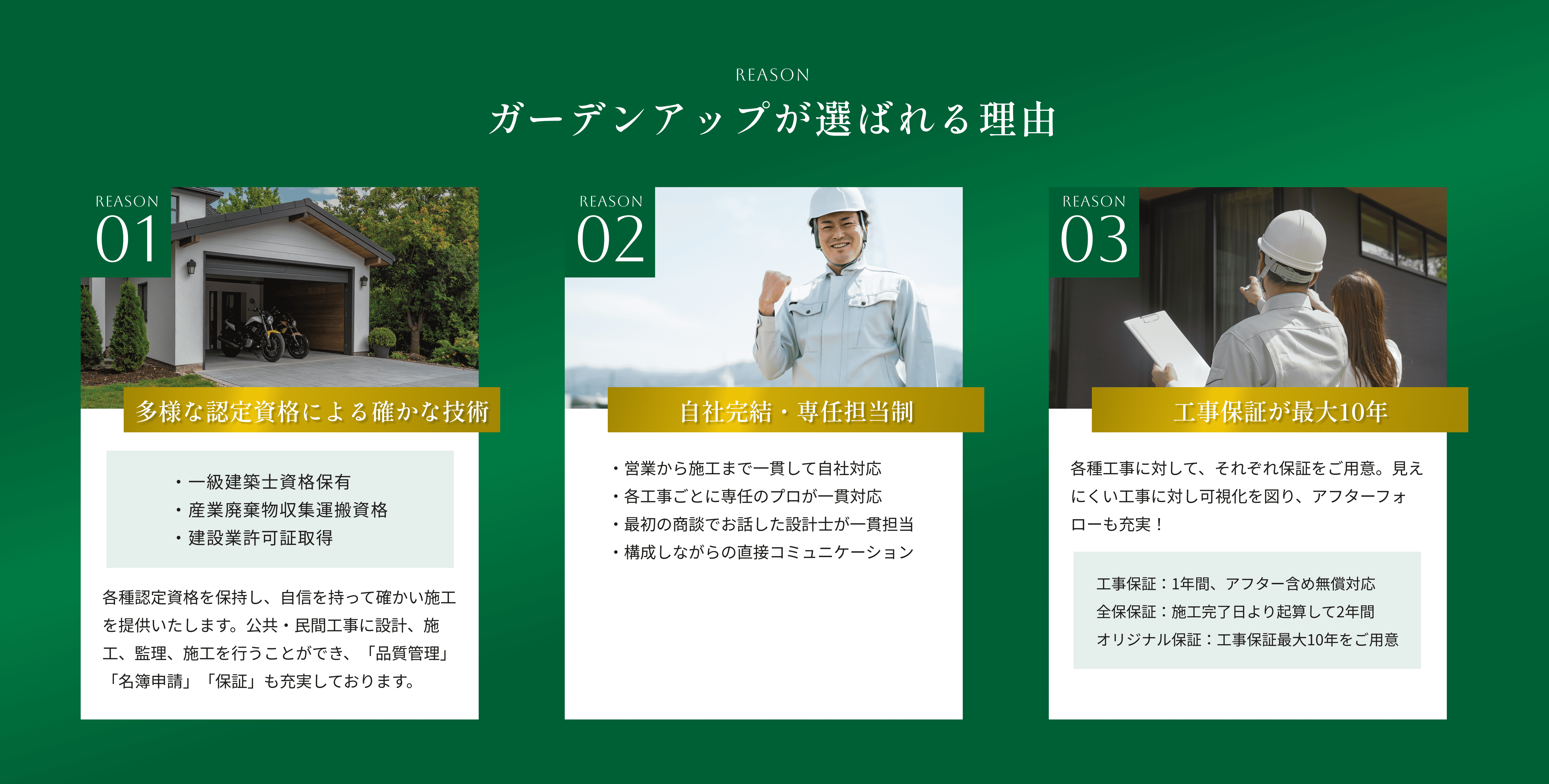 工事の内容やお客様の状況に応じて変化いたしますが、土間コンクリートの場合は最短3日、カーポートの場合は最短2日で承ります。それ以外の場合や詳細は別途ご提示いたします。